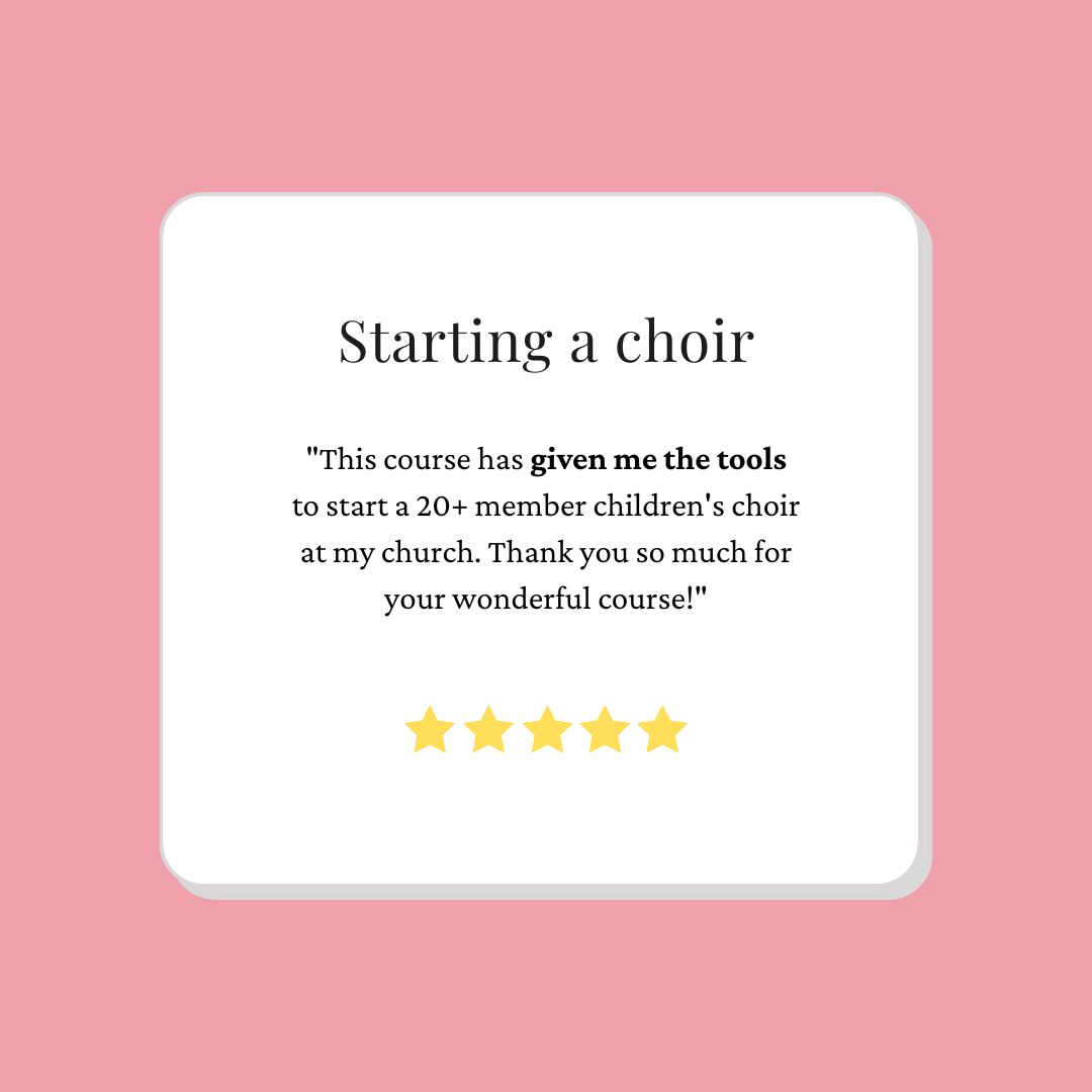 "This course has been such a treasure trove of ideas and inspiration, as well as truly instructional. I am learning SO much and I'm feeling more equipped and confident to lead our church choir."
