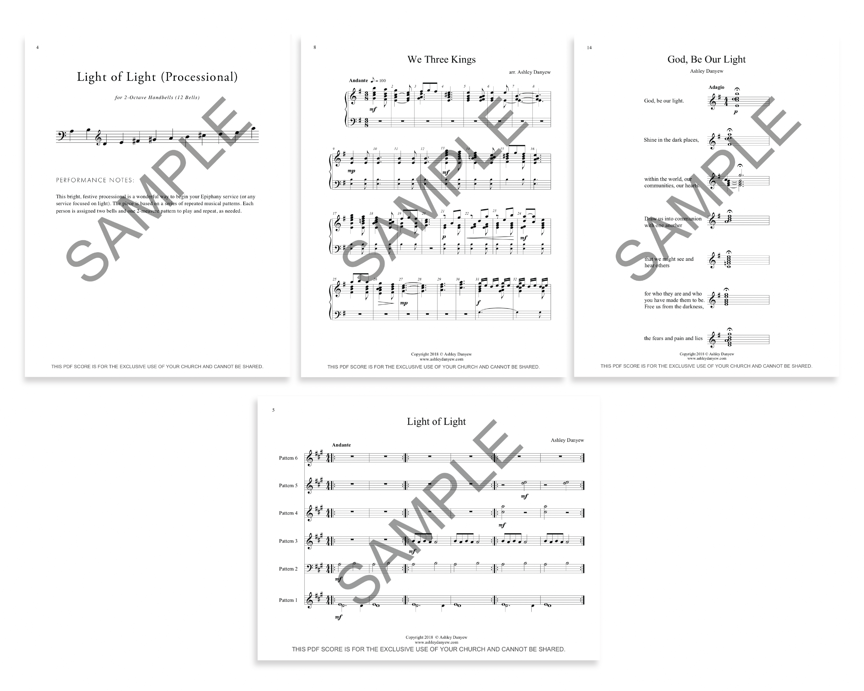 This bright, festive processional is a wonderful way to begin your Epiphany service (or any service focused on light). The piece is based on a series of repeated musical patterns. Each person is assigned two bells and one 2-measure pattern to play and repeat, as needed.