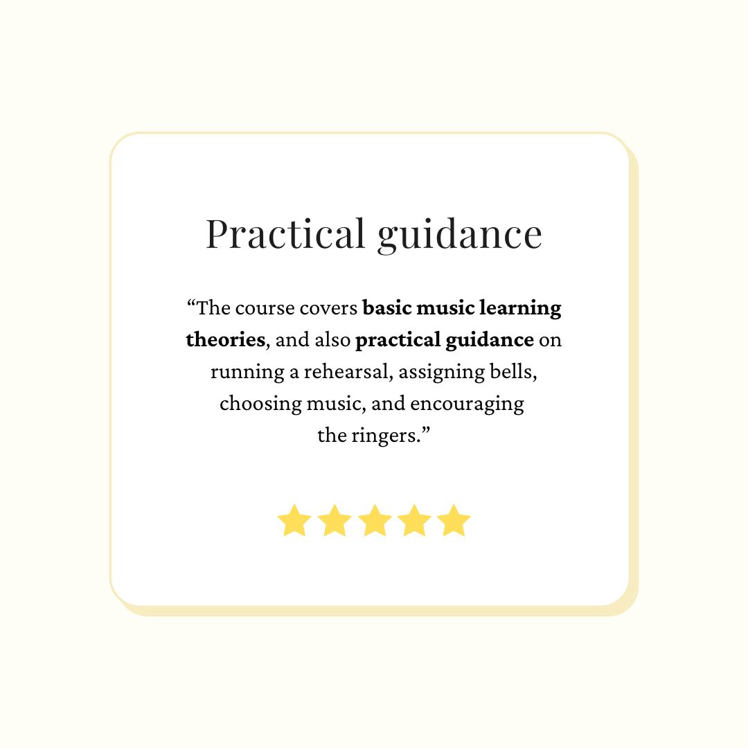 That’s okay! This course will walk you through what to teach and how to explain it in clear, accessible ways. You’ll gain confidence in your own understanding and learn how to model and teach the techniques your ringers need most.