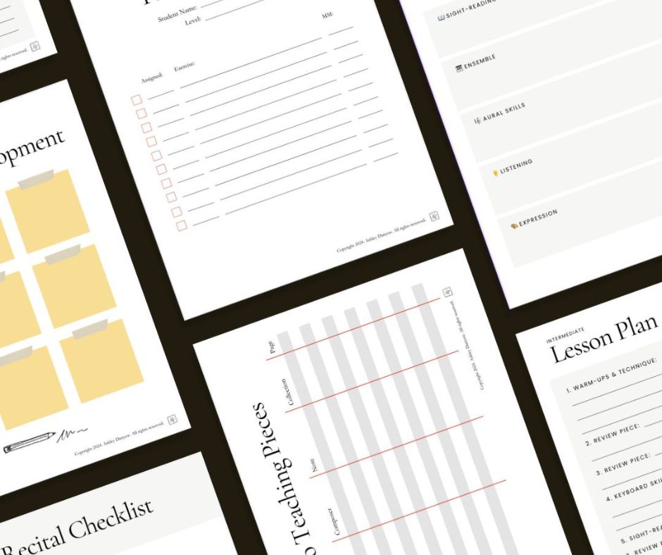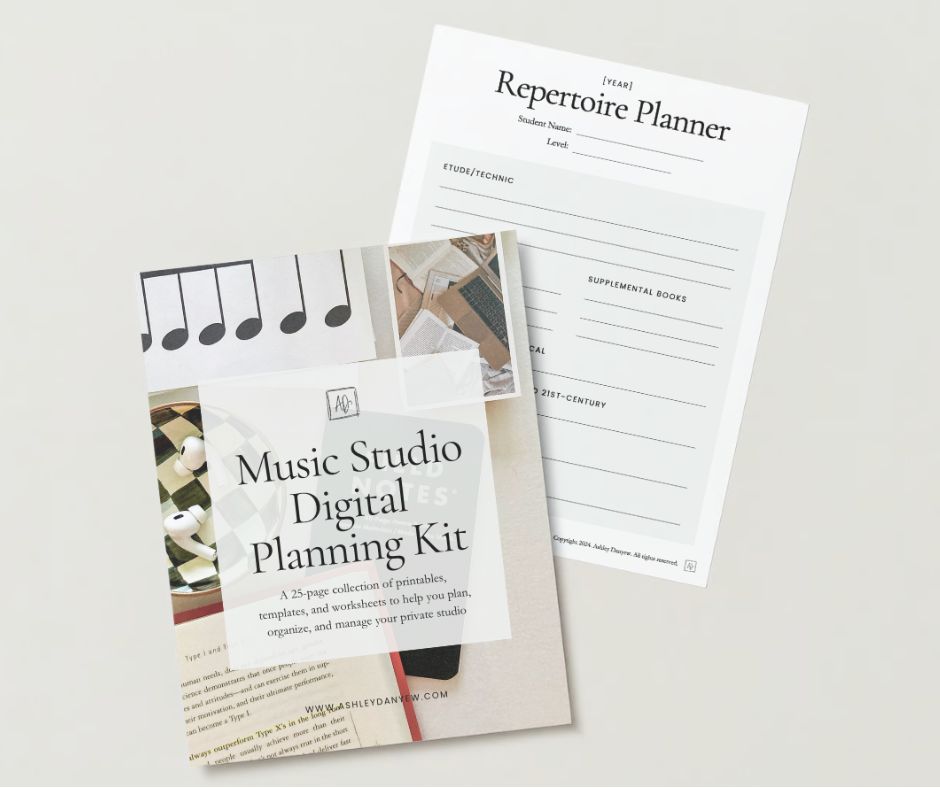 Introducing the Music Studio Digital Planning Kit: a 25-page collection of printables, templates, and worksheets—everything from technique charts to studio class planning documents and recital checklists to budget worksheets.