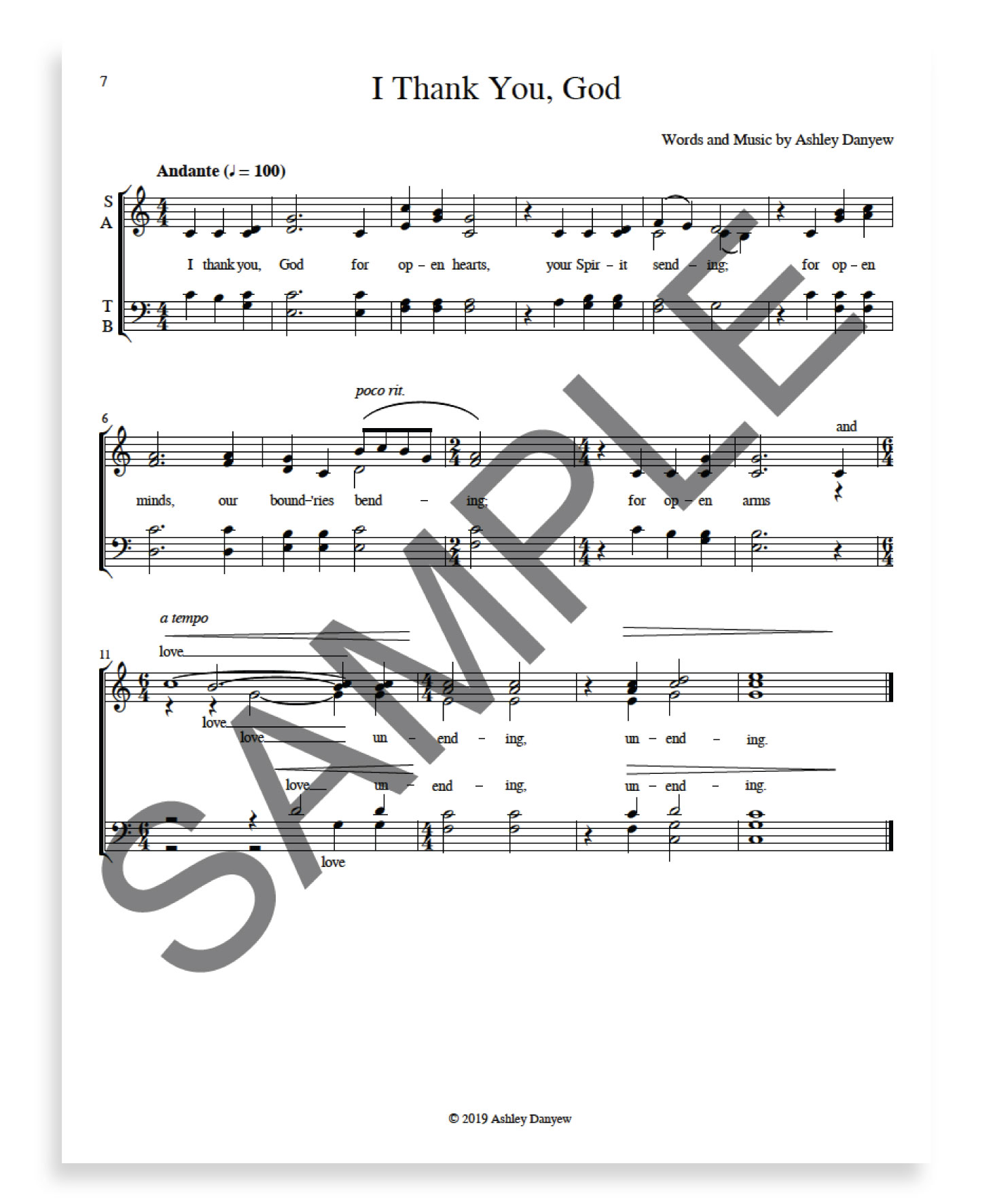 "I Thank You, God" - SSAT(B)B