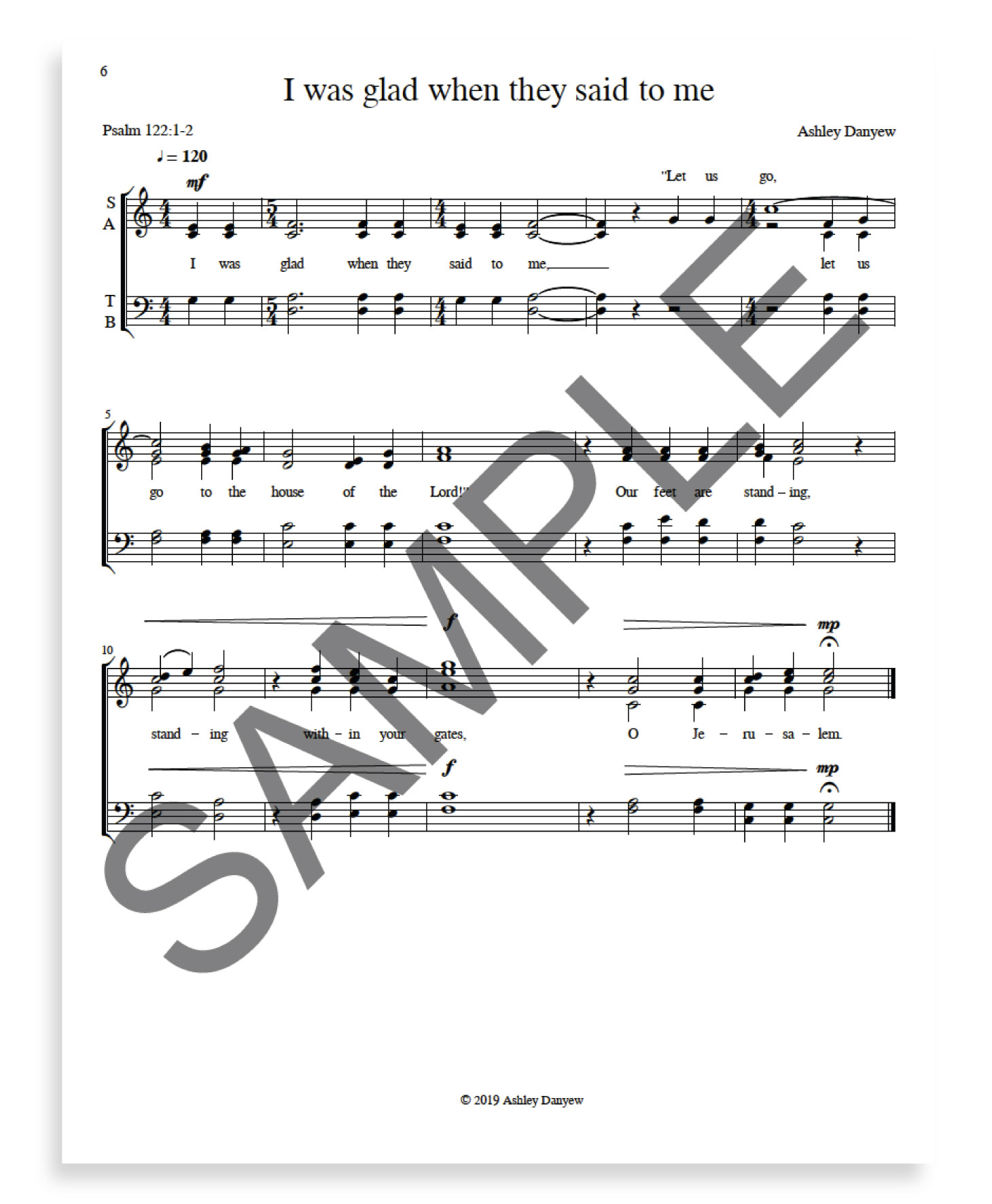 With text based on Psalm 122:1-2, this upbeat piece would work well as a choral introit at the beginning of worship.