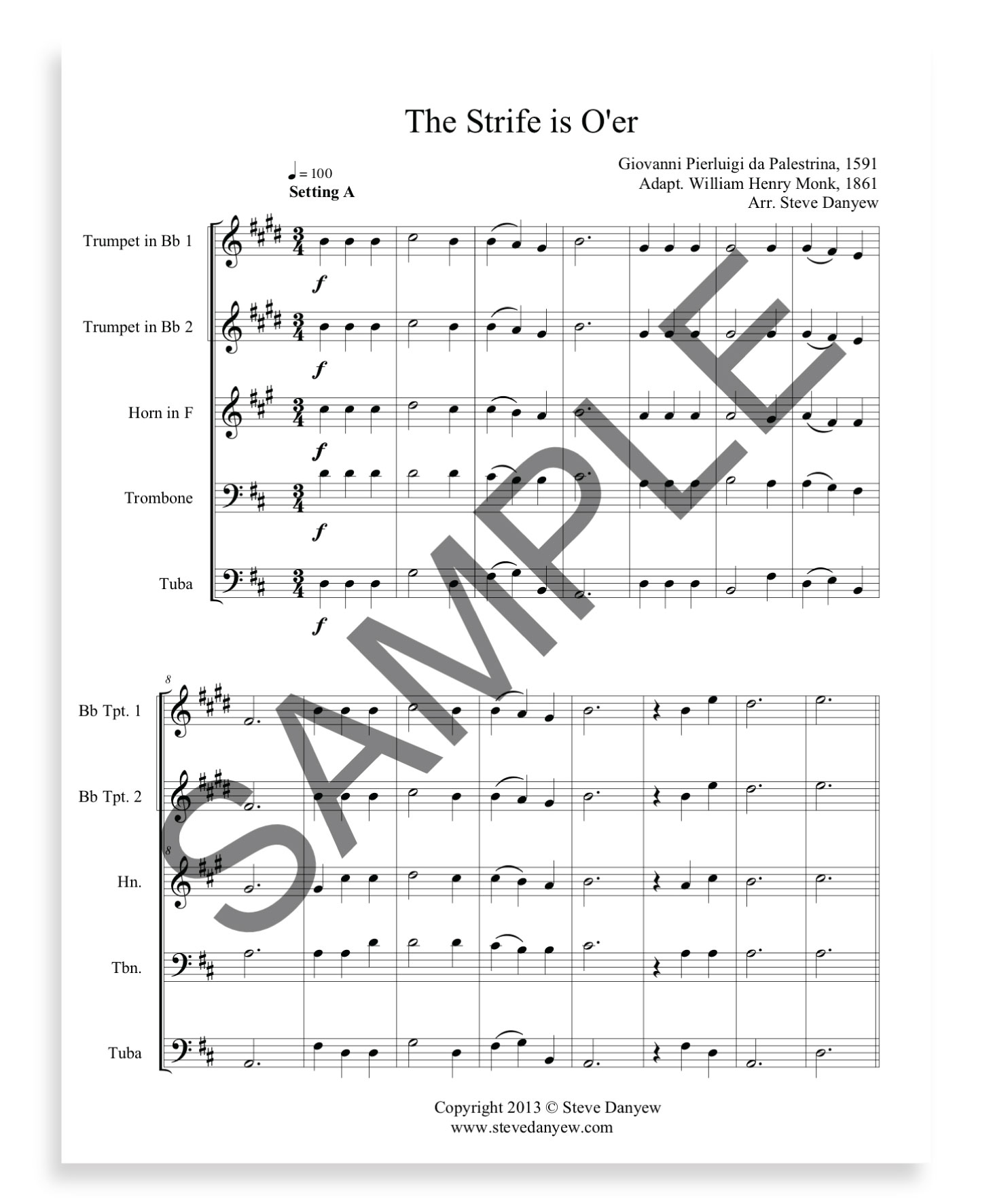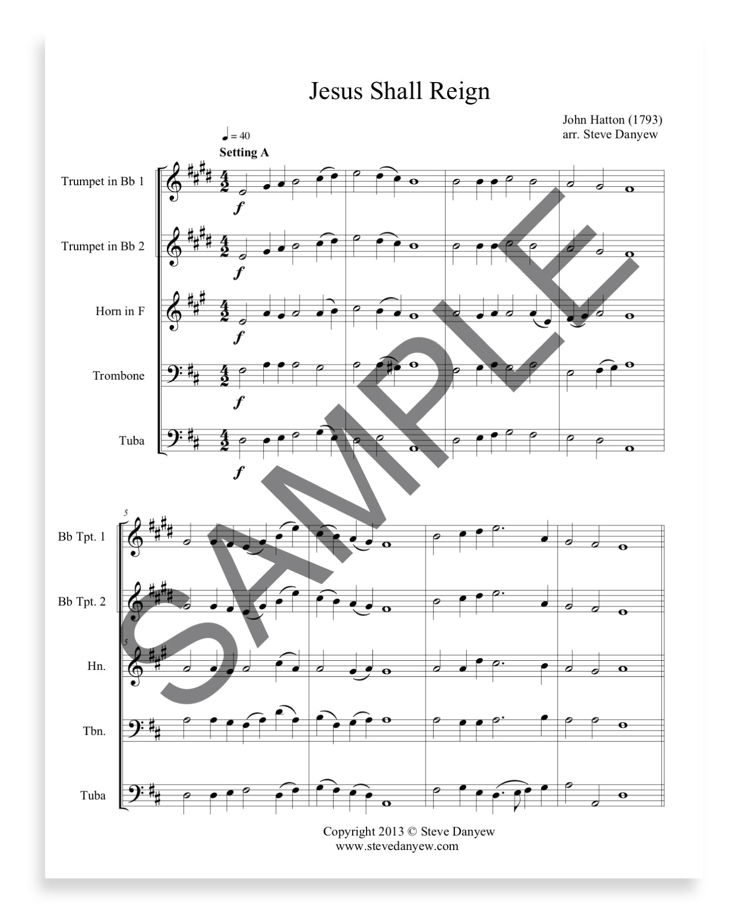 Creative and well-crafted settings of two well-known Easter hymns: Jesus Shall Reign (also known as I Know That My Redeemer Lives) and The Strife Is O'er, arranged for brass quintet with optional congregation.